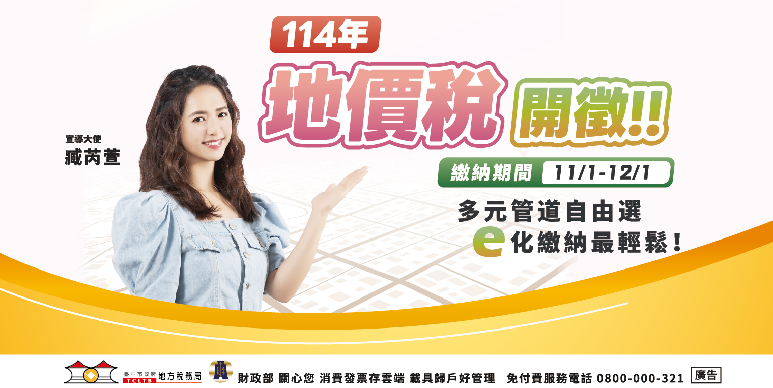 代宣傳-臺中市政府地方稅務局114年地價稅開徵!記得在12月1日前完成繳稅
