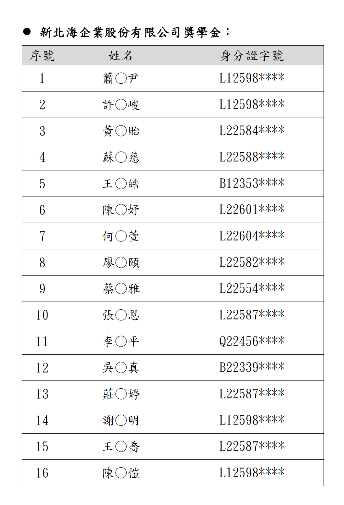 114年下半年高中職暨大專院校各類獎學金錄取名單出爐囉!