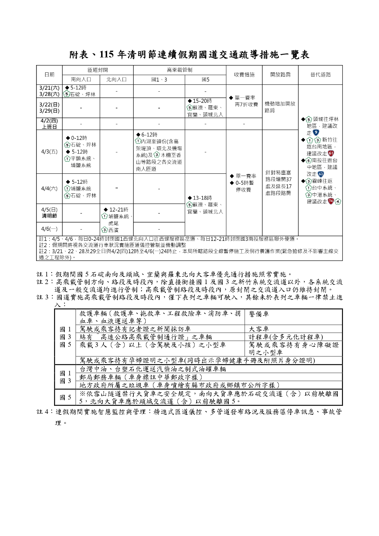115 年清明節連續假期國道交通疏導措施_page-0001